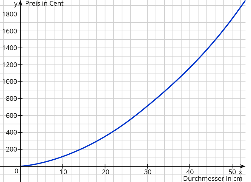 Gegeben ist die Modellfunktion. Es soll geprüft werden, welche der angegebenen Pizzagrößen durch die Funktion beschrieben werden.