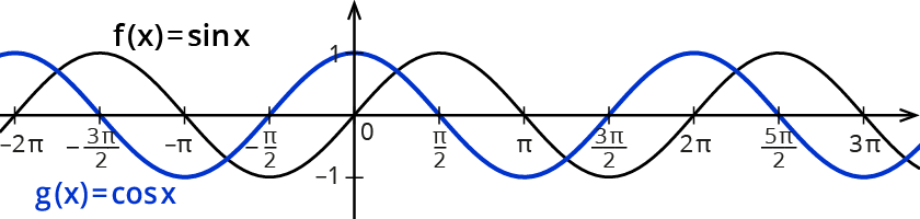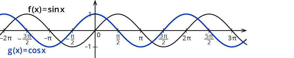 Hier kommen die Sinus- und die Kosinusfunktion mit den Winkelgrößen an der x-Achse: