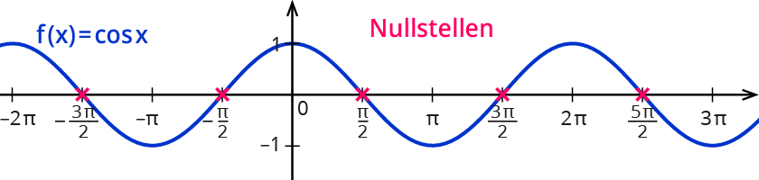 Das heißt: $$cos(pi/2+k*pi)=0$$ für $$k in ZZ$$