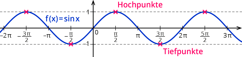 Bei der Sinusfunktion gibt es unendlich viele Hochpunkte. Der größte Funktionswert ist 1.