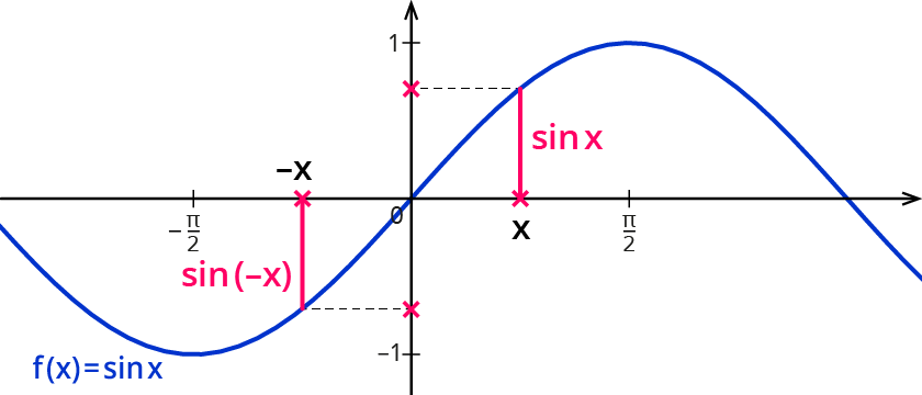 In Worten: $$sin(-x)$$ ist $$sin x$$ mit umgedrehtem Vorzeichen.