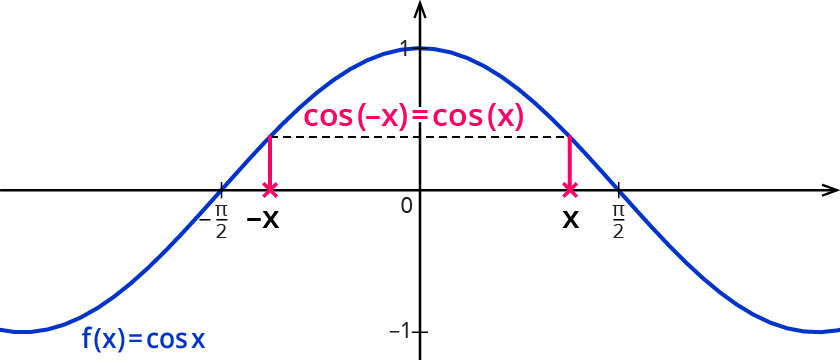 In Worten: Ein x-Wert und der negative x-Wert haben denselben Kosinuswert.